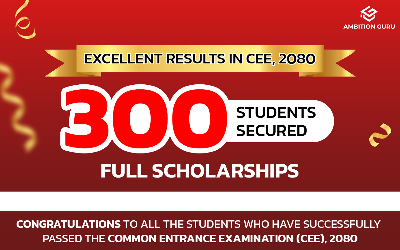 In addition to these outstanding individual accomplishments, a total of 300 students from Ambition Guru have also earned full scholarships. This is a testament to their hard work, dedication, and the quality of education provided by Ambition Guru. We take immense pride in their accomplishments and wish them continued success on their academic journey.