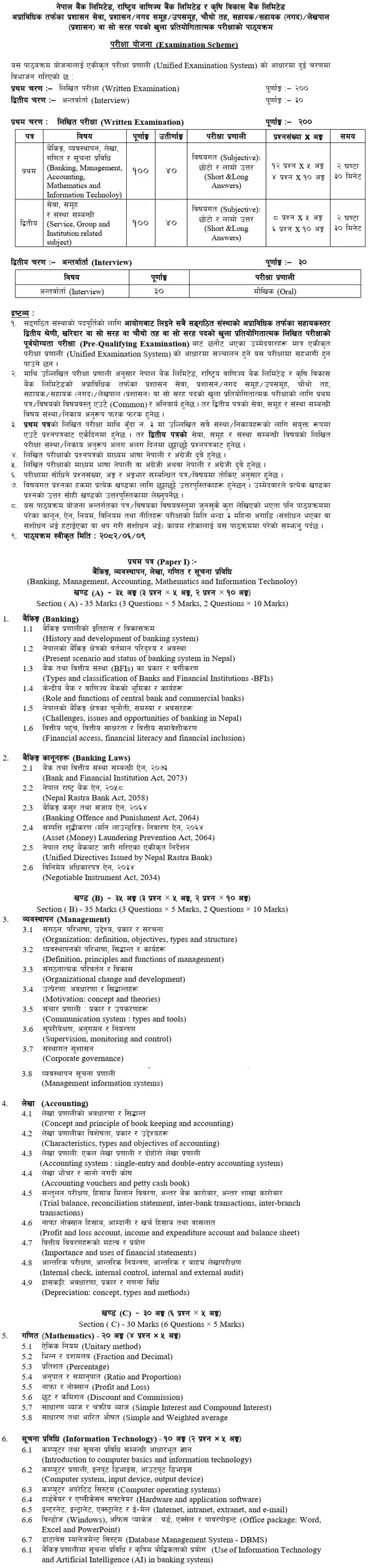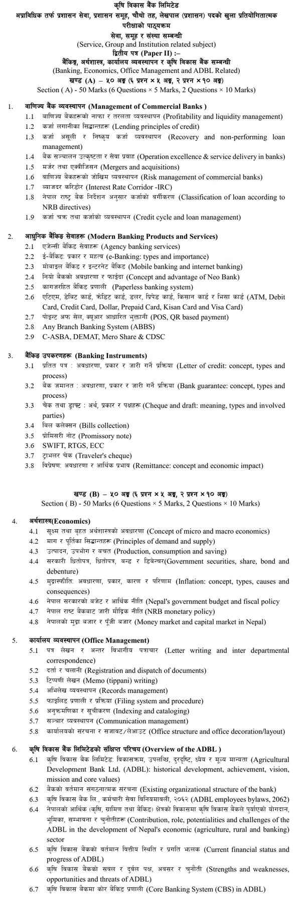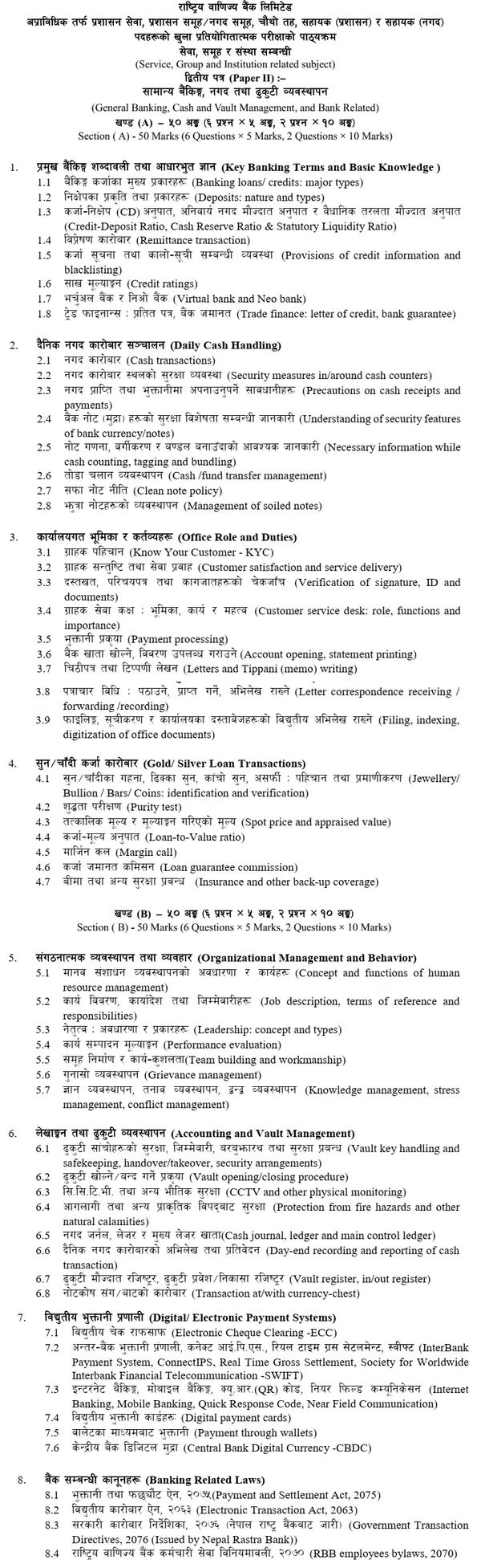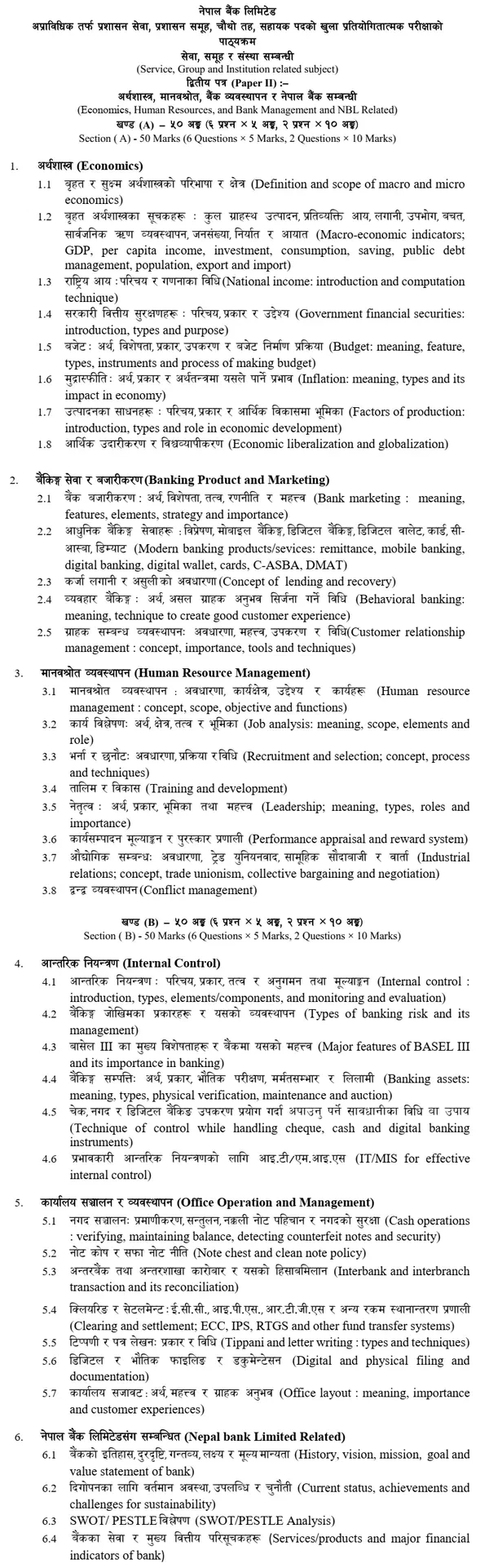 The syllabus for Paper 2 will vary according to the specific institution (Nepal Bank, RBB, or ADBL).