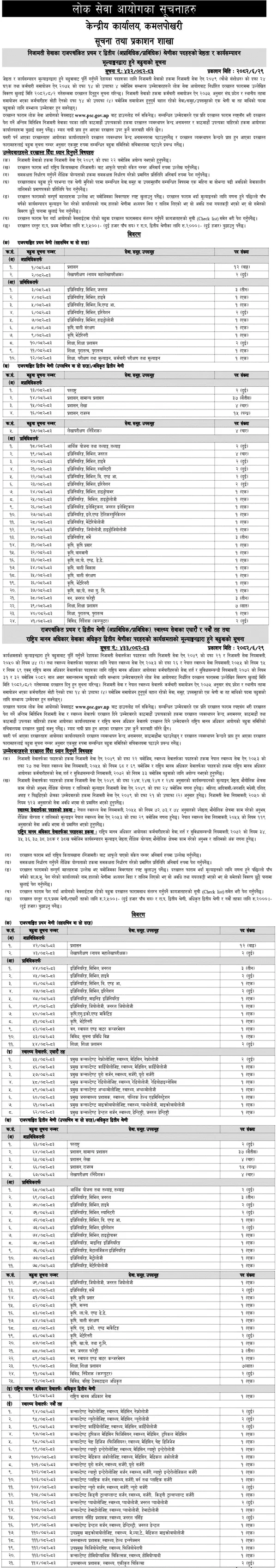 The Public Service Commission (PSC), Lok Sewa Aayog, Nepal has officially announced vacancies for Gazetted First and Second Class (Technical and Non-Technical) positions under the Civil Service, Federal Parliament Service, Health Service, and National Human Rights Service.