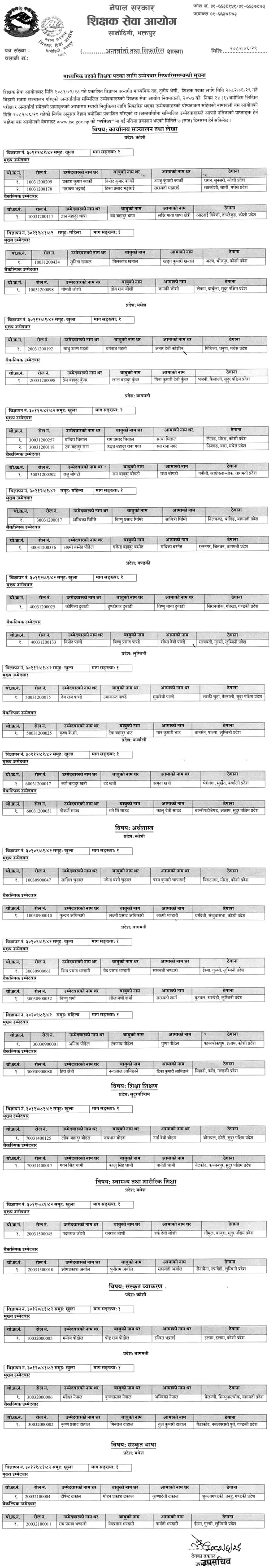 The Government of Nepal, Teacher Service Commission (TSC - Shikshak Sewa Aayog), has officially published the Secondary Level (Third Class) Interview Results and Recommendations 2082. The notice includes the names of successful candidates recommended for permanent appointment in various subjects.