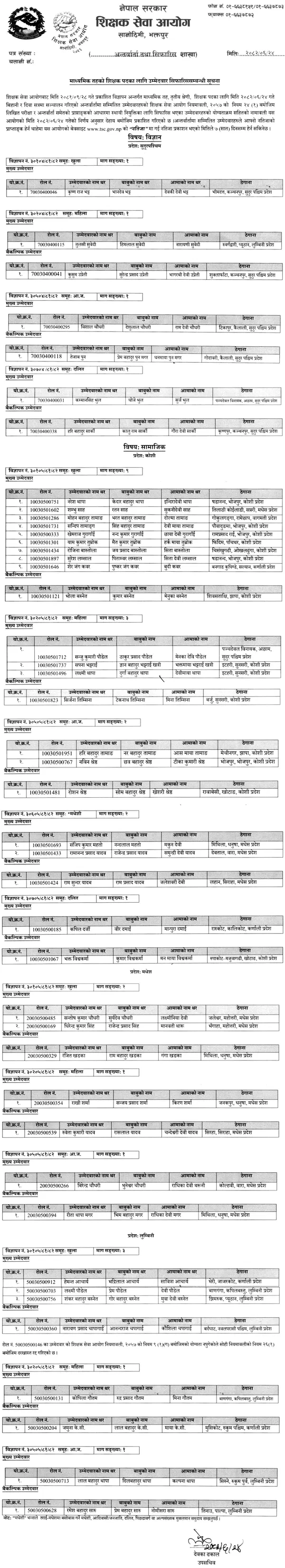 The Teacher Service Commission (TSC), Government of Nepal, has officially published the interview results and recommendation notice for the Secondary Level (MaVi), Third Class Teacher positions. This publication follows the advertisement issued on 2081/09/28.